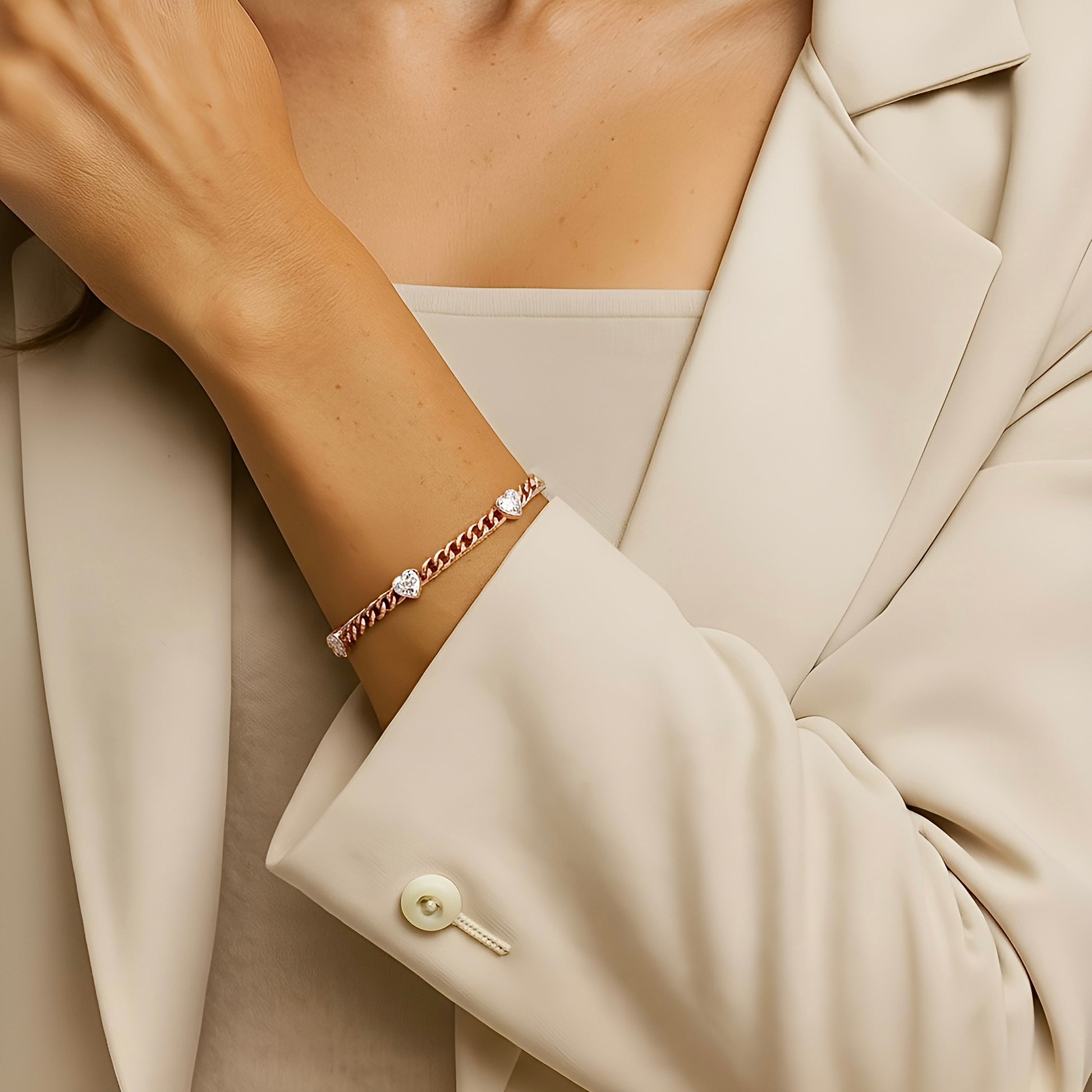 צמיד חוליות עם לבבות כסף 925 זהב אדום